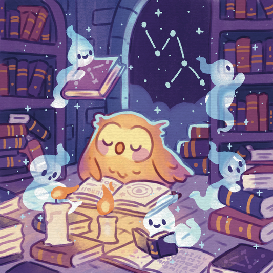 Hibou endormi à la bibliothèque ~ Print carré